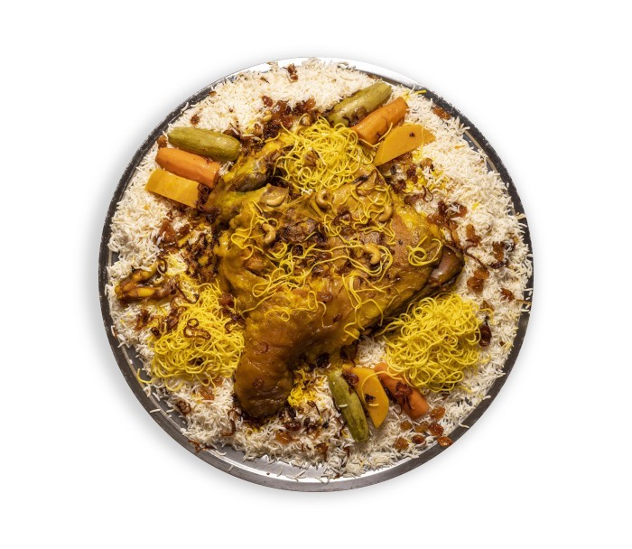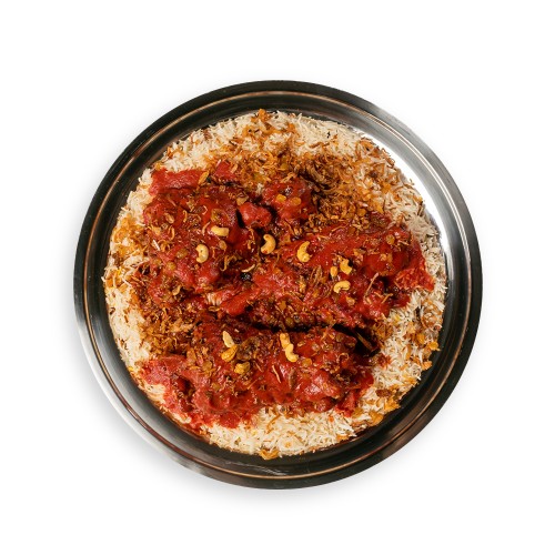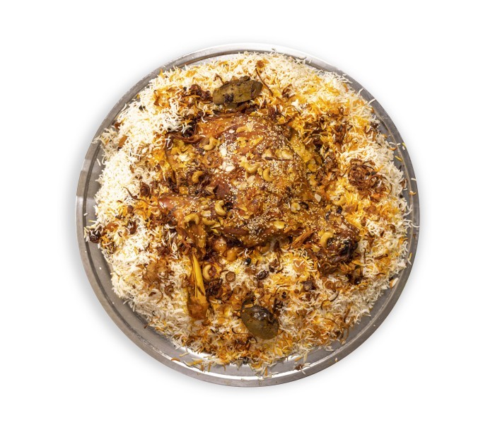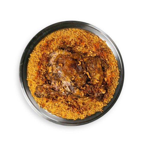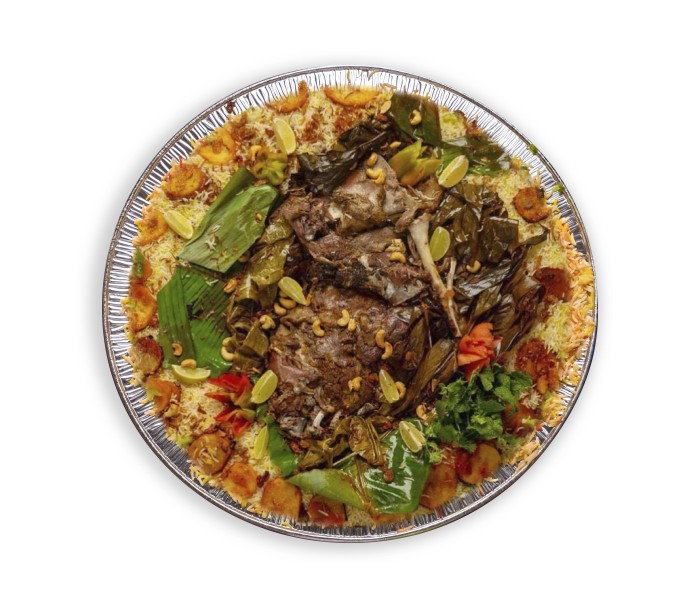 (1313 سعرة حرارية)ذبيحة طازجـة مطبوخــــــة لمدة 5 ساعات بالبخار بعناية وشغــــف وخليــــــط من البهارات الخاصة المختارة ليضفي عليها المزج بين المطبــــخ العماني والهندي وتقدم مع الارز البرياني المزين بتشكيلة من البصل والمكسرات.