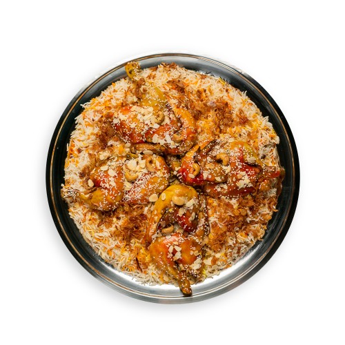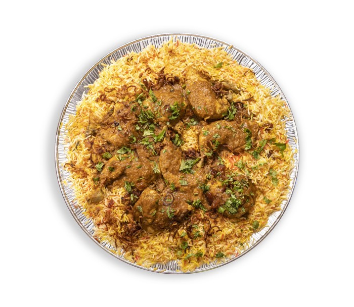 (2979 سعرة حرارية)صحن مكس ( حبه دجاج برياني عماني مع نفر لحم برياني عماني )يقدم مع الارز البرياني و 3 انواع صوصات ( دقوس + خيار لبن + صوص اسبيشال )